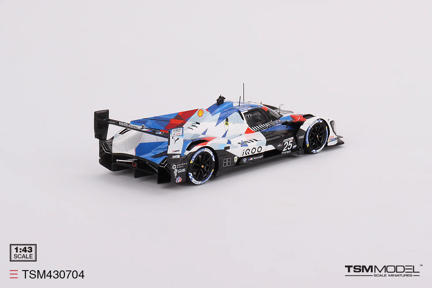 Highly detailed resin 1/43 scale Truescale (TSM) model of the BMW M Hybrid V8 No.25 BMW M Team Rll 2023 IMSA Daytona 24 Hrs prototype.
